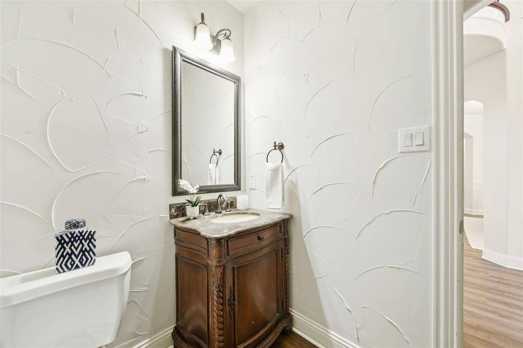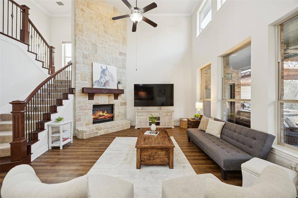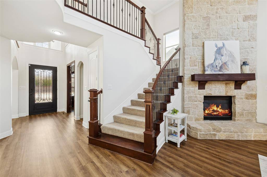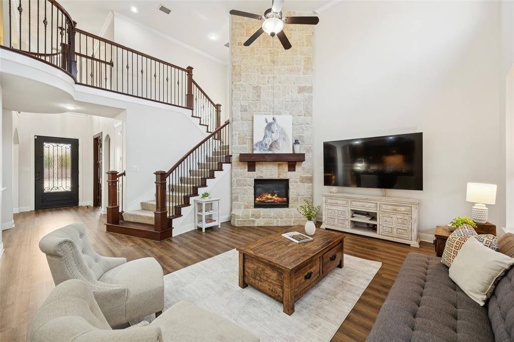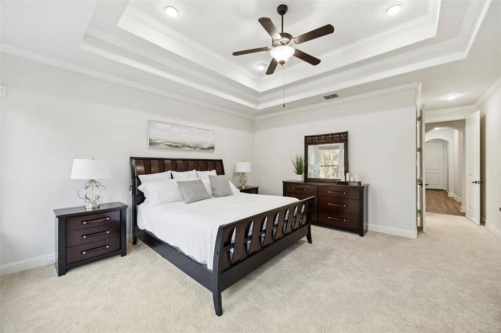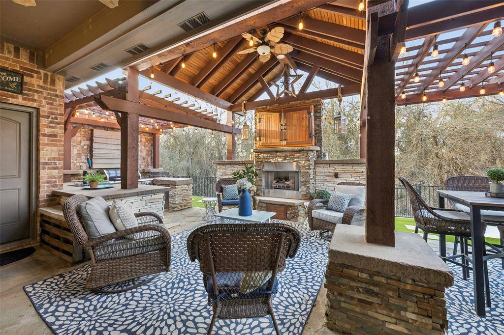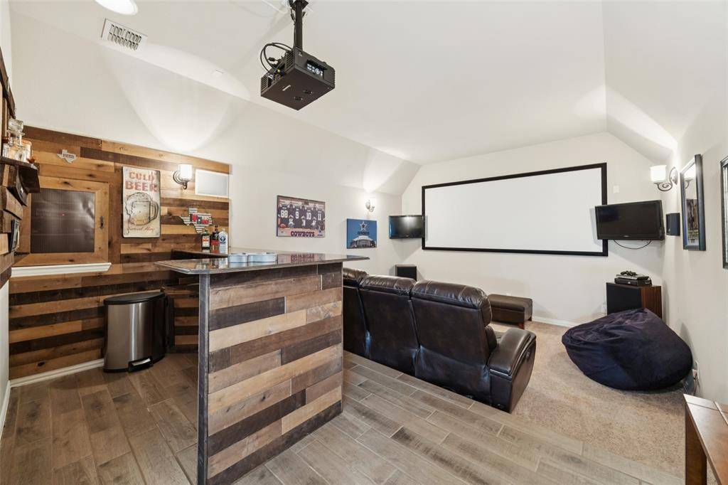 Located in the sought-after golf community of Trophy Club, this impeccably maintained four-bedroom home with three full baths and one half bath offers an exceptional blend of comfort and style. The home is situated on a beautifully landscaped lot that backs to the Corps of Engineers property providing extra privacy so you can enjoy outside living in a serene setting. Inside, new luxury vinyl plank flooring, new paint and carpet enhance a well-designed floor plan that includes a first floor primary suite w-ensuite bath including granite vanities, private downstairs office with built-in bookshelves plus a closet for extra storage. The 2 story living room provides expectational views of the outdoor living area & natural light. Kitchen features a large center island w-granite countertops, ss appliances, & walk-in pantry directly off of the formal dining room. Walk up stairs & step into the spacious game room that flows into the dedicated media room with a custom built-in bar—ideal for work, play, & entertaining. Upstairs includes 3 spacious bedrooms, one full bath, & a J&J bath each with sep vanities. One secondary bedroom is currently being used as a dedicated workout room with rubber flooring that can be easily changed if buyer prefers. The backyard is truly a highlight of this home, featuring a maintenance-free design lawn with a private putting green & an impressive cabana for outdoor living. The gas grill & beverage refrigerators round out this space creating the perfect retreat for relaxation or hosting guests year-round. Imagine hosting your next Super Bowl party in this impressive outdoor area! ***NEW CLASS 3 ROOF along w-new gutters, and fresh exterior staining February 2026.*** Home is only minutes from DFW Airport, premier shopping, dining, and entertainment. Do not miss the opportunity to see this exceptional Trophy Club home for yourself. Schedule your showing today and experience everything this home has to offer firsthand.