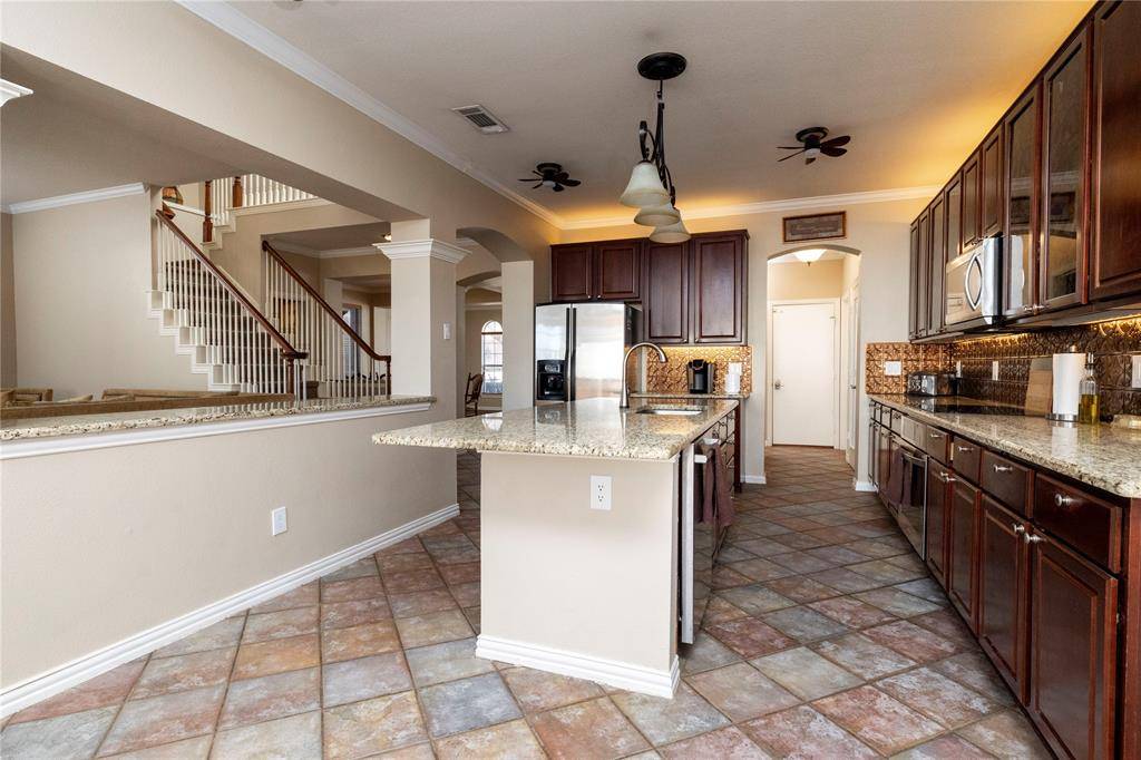 Beautiful updated home in gated community of HiddenLakes. 5 bedroom home is located only a block from highly sought after Hidden Lakes Elementary and is located in the gated Idlewood Oaks community! Inside, enjoy new countertops, vessel sinks, and fully refreshed bathrooms. The open floorplan offers flow between the kitchen, living, and dining spaces, along with smart separation for privacy and entertaining. Upstairs and down, you'll find hardwood floors, natural light, and thoughtful touches throughout. The kitchen is designed for both daily life and gatherings with granite counters, island, and ample cabinetry, and stainless appliances. It opens to the large living room with warming gas fireplace, and plenty of windows to allow in natual light from the north. Combo room up front allows for plenty of furniture arrangements as a formal dining, and living room combo, or can easily be converted into an office area. Downstairs bedroom offers a second primary set up complete ensuite bath. A large primary suite gives you spa-style comfort, while the backyard provides space to relax or play, and has a beautiful covered patio that makes it perfect for enjoying day or night. Only one block from Hidden Lakes Elementary and the community pool, this home also sits near walking trails, playgrounds, and Sky Creek Ranch Golf Club. With top-tier Keller ISD schools and a tucked-away location inside a gated neighborhood.