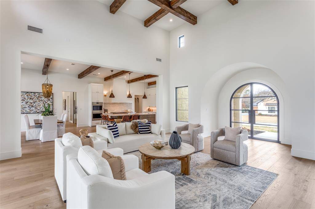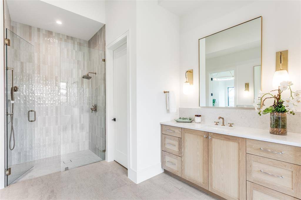 Tucked within the quiet enclave of Samantha Springs Estates, this newly completed custom residence offers privacy and refined design. Set on an elevated, tree-filled acre lot, the home feels both expansive and protected — a peaceful retreat surrounded by mature trees. Inside, natural light defines the experience. Steel and glass doors and windows, wide-plank white oak floors, wood-beamed ceilings, and a soft, organic palette create a home that feels warm, grounded, and elegant. Open floor plan invites connection while still allowing each space to breathe. Gourmet kitchen is designed for both everyday living and entertaining at scale. Wolf and Sub-Zero appliances, a center island, custom cabinetry, quartz countertops, and a handmade Zellige tile backsplash come together in a space that is as beautiful as it is functional. Study offers a quiet place to work or retreat, featuring a beamed ceiling, statement chandelier, and a wall of custom built-ins for storage.Primary suite is a sanctuary with a sitting area and a coffee bar with beverage fridge. Spa-inspired bath features dual vanity areas with custom mirrors and elegant lighting, frameless glass shower wrapped in custom tile, and a freestanding soaking tub. Two expansive walk-in closets with custom built-ins complete the suite. Downstairs, an oversized flex space serves beautifully as a game room or media lounge, highlighted by a custom ceiling with LED lighting. A bar with sink, cabinetry, beverage refrigerator, and a glass-enclosed wine display is ideal for entertaining.Guest suite on the main level accommodates a king-size bed and seating area, with a large walk-in closet and private bath. Upstairs, a spacious game room provides a perfect retreat, accompanied by three additional bedroom suites, each with its own en-suite bath. Oversized covered patio invites year-round enjoyment, complete with a grilling station featuring a Coyote grill and honed black granite countertop. $50K design or pool allowance.