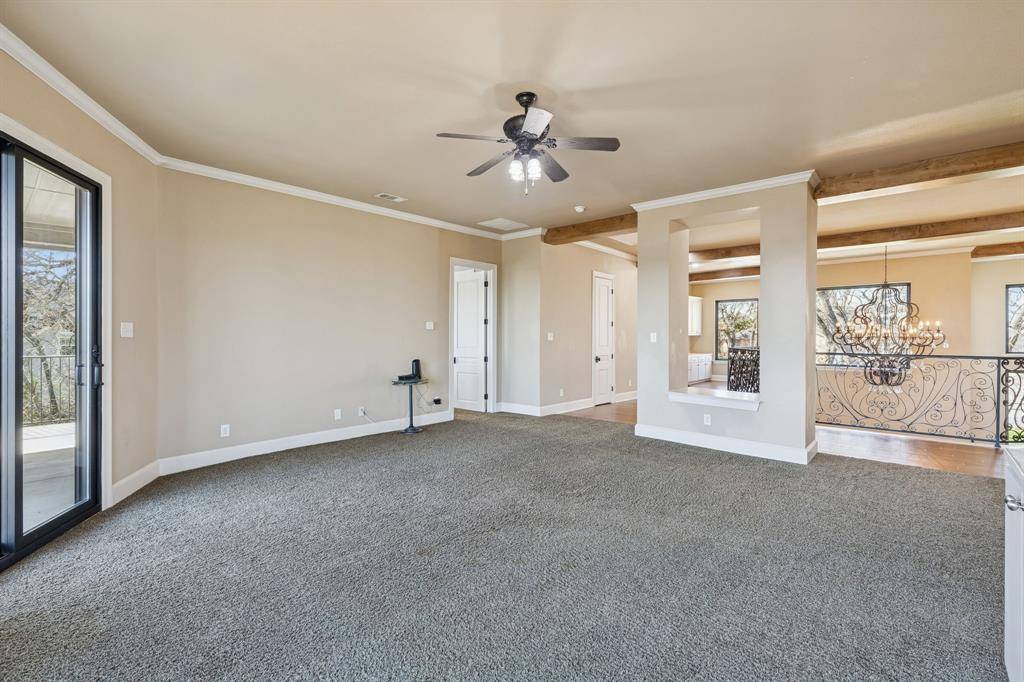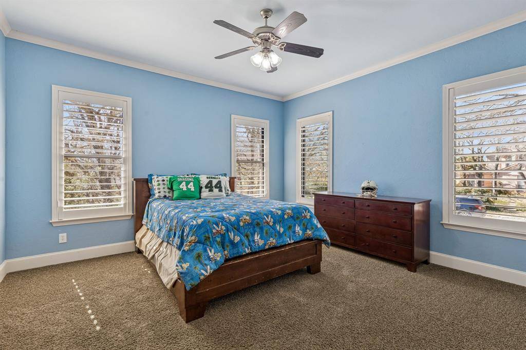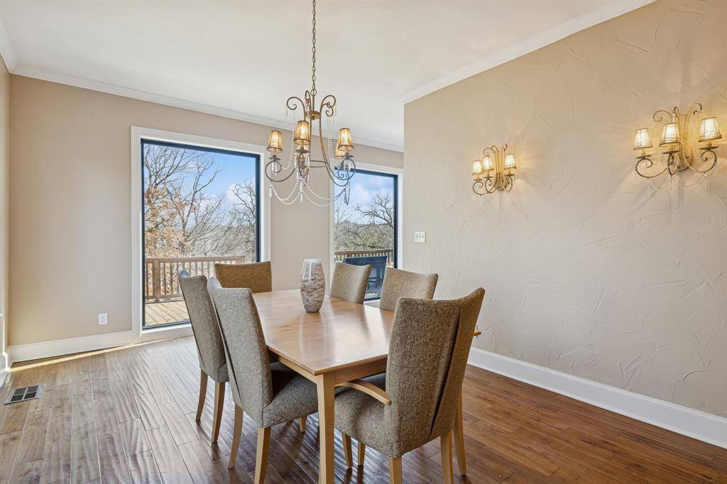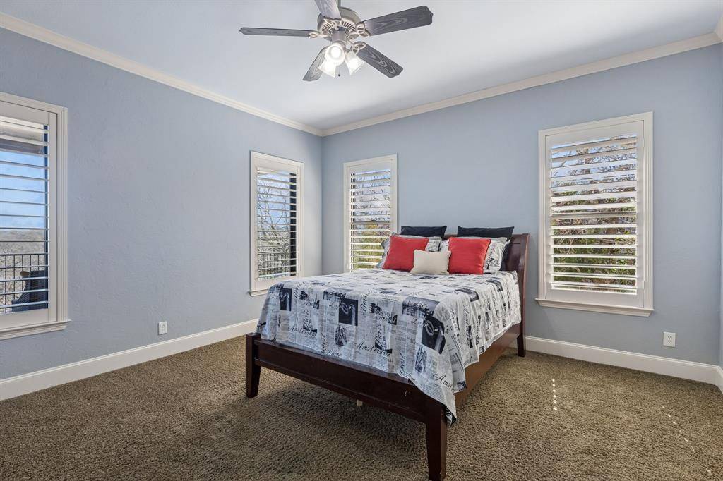 Prized Location! GRAPEVINE LAKE with Corps of Engineers land as your backdrop, plus coveted CARROLL ISD SCHOOLS! An expansive 0.749-acre lakeside retreat delivers the ultimate lifestyle experience, with lake access, scenic trails, and a stunning water view, all crafted for those who crave privacy, natural beauty, and a true resort-like atmosphere. This custom home is thoughtfully designed for effortless living and unforgettable entertaining. The heart of the home is a chef's kitchen featuring Viking appliances, three versatile islands, and a spacious open-concept layout that connects indoor living to the natural beauty just beyond your windows. The upper terrace sets the stage for slow mornings with coffee or unforgettable evenings by the fire, while the oversized deck is ideal for BBQ's and gatherings! All four bedrooms are private Ensuite, generously sized with walk-in closets, and the expansive primary suite offers a true retreat. Two spacious living areas offer plenty of room to spread out, gather, or unwind. The private, fully equipped office offers an ideal work-from-home setup, while dedicated built-in desk space in the bedroom area provides convenient room for homework or everyday tasks. Natural light pours through plantation shutters, framing peaceful views of mature trees from every window and giving the home a calm, tucked-away feel. Out front, enjoy the beauty and ease of low-maintenance artificial turf, plus the convenience of an oversized driveway. This one-owner home is a true celebration of elevated, mindful living in one of North Texas's most scenic cities and neighborhoods. This unique property offers a rare chance to experience lake living, all within minutes of DFW Airport & Meadowmere Park.