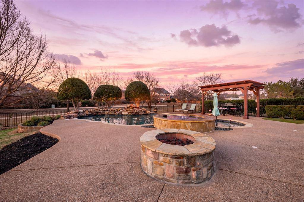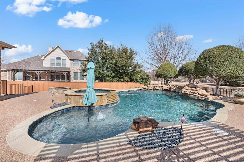 Situated on the largest lot in the neighborhood, this exceptional property offers rare space, privacy, and presence. The expansive backyard is a true showpiece, anchored by a resort style pool and spa that transforms everyday living into a luxury experience. Whether hosting elegant gatherings or enjoying quiet evenings under the Texas sky, this outdoor setting feels like a private resort.