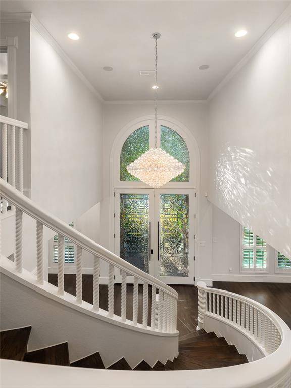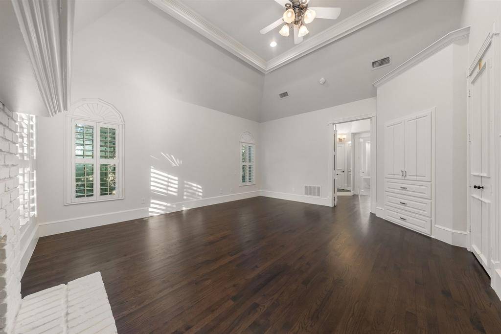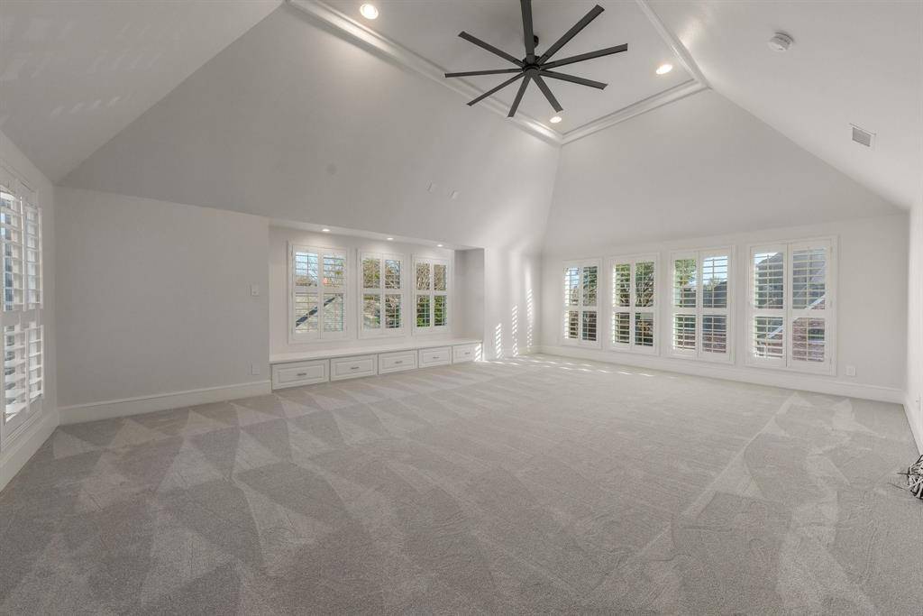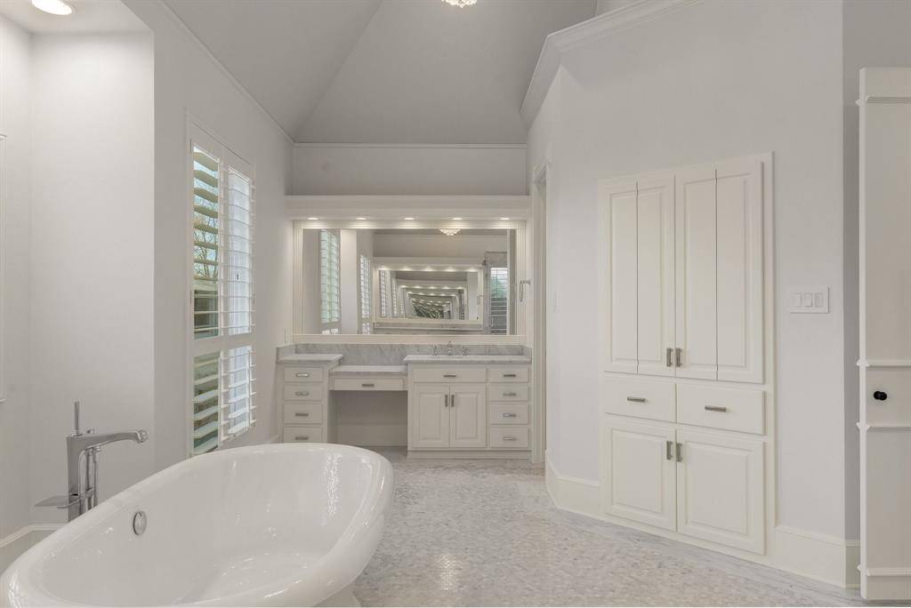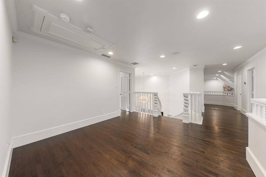Stunning, beautifully updated Monticello custom home boasting exquisite finishes throughout. Soaring ceilings, crown moulding, abundant natural light, red oak hardwood flooring, custom millwork, plantation shutters, and a fabulous floating staircase create an elegant yet welcoming interior. The dramatic entry showcases custom 10-foot solid wood double doors with matching transom, hand-cut Low-E glass, and Emtek hardware. The gourmet kitchen features honed Brazilian quartzite countertops with full slab backsplash, oversized island with breakfast bar seating, custom soft-close cabinetry, dual Kohler apron-front sinks, and professional-grade appliances including a 48” gas cooktop, 48” built-in refrigerator, double ovens, two dishwashers, warming drawer, ice maker, wine refrigerator, and Vent-a-Hood system. Multiple living areas and a private study with built-ins and fireplace provide flexibility for entertaining and working from home. The primary suite offers a gas fireplace, expansive walk-in closets, and a spa-inspired Carrara marble bath with double shower and freestanding cast iron soaking tub. Three additional bedrooms upstairs, each with a private en-suite bath, a separate study and reading nook, plus a spacious game room providing plenty of space for family fun. Additional upgrades include two tankless water heaters, Ecobee smart thermostats, replaced ductwork, radiant barrier, enhanced attic insulation, whole-home surge protection, Control4 pre-wire, Cat 6 wiring, in-ceiling speakers, and Ring doorbell. Exterior improvements include Hardie siding, Low-E windows, a 2020 Class 3 impact-resistant roof, double driveway gates (2024) with MyQ access, insulated garage doors, Tesla charger, security camera wiring, covered patio pre-wired for TV, and gas lines ready for an outdoor kitchen. Situated on a treed corner cul-de-sac lot with 8-foot cedar fence and walking distance to neighborhood ponds, trails, tennis and pickleball courts, all within award-winning GCISD.