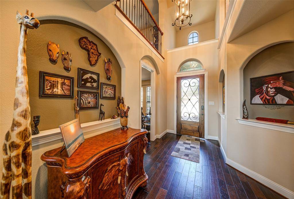 This gorgeous home is a home is a perfect blend of style and comfort. The backyard is a private OASIS with a HEATED SALTWATER POOL and a new 30'x15' ALL-SEASONS COVERED PATIO. This one-of-a-kind home is loaded with interior upgrades and is also ideal for multi-generational living or today's modern families. The NEXT GEN living space offers a private entrance with an additional living area, bedroom, bath, utility, kitchen and garage. Ideal for the IN-LAWS or an area for the teens. This layout gives you 2 DOWNSTAIRS MAIN BEDROOMS. The custom covered patio includes electric drop shades, stonework, gas grill, stamped concrete flooring. The owner recently spent over $150,000 on backyard upgrades. Inside custom on-trend finishes include hardwood floors, designer lighting and new mirrors, fresh paint, newer carpet, a fully equipped media room and more. On the main floor you'll find a private office with French doors, generous living room with floor to ceiling stone fireplace and wall of windows overlooking the pool and covered patio. The fabulous kitchen offers an oversized granite island, top of the line appliances, a walk-in pantry, gas cooktop, double ovens. Also downstairs, enjoy the spacious breakfast room, laundry room, half bath. The primary bedroom and bath are the owner's retreat with a luxurious upgraded & enlarged multi-head shower, jetted tub, and walk-in closet. Upstairs are two secondary bedrooms which share a jack and jill bath, along with separate game and media rooms and one more half bath for convenience. The current owner added new upgraded carpet, new mirrors throughout, accent painting, extra overhead garage storage, enlarged the master shower to include multiple showerheads. New roof in 2026. The front yard offers custom designed landscaping for amazing curb appeal! Located close to world class shopping and dining just 15 min. west of DFW International Airport within the sought-after Golf community of Trophy Club and award-winning NWISD.