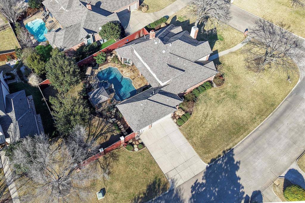 Welcome to this beautifully cared for residence on a corner lot in a cul-de-sac, filled with thoughtful updates and warm, inviting spaces. The home has been meticulously maintained and thoughtfully improved both inside & out. Inside, the extensive upgrades including ALL new energy-efficient windows and two rear glass doors installed in 2023. Wood flooring added throughout key living areas, including the primary suite, dining room, guest room, office, bonus room, & upstairs landing. The updated kitchen offers quartz countertops, sinks, backsplash, hardware, a wine refrigerator, Bosch dishwasher, induction cooktop & SS hood. The butler's pantry improvements include a custom stone accent wall and additional quartz surfaces. Bathrooms have been refreshed with quartz countertops, fixtures, and updated tile. Mechanical improvements include 3 new HVAC units and 2 furnaces (2022–23), a newer water heater (2021), fresh interior paint (2025), and upgraded lighting throughout. A complete pool renovation features a PebbleTec® surface, new tile and stone coping, LED lighting, water feature and new pool heater. The expanded pool deck is finished in Oklahoma flagstone, leading to a gazebo with a ceiling fan, mounted heaters and TV—all convey and perfect for all weather outdoor entertaining. The grounds have been professionally re-imagined with a full landscape redesign by a Master Gardener, including widened beds and entirely new plantings. The property was selected as one of only five featured gardens in the 2024 Southlake Garden Tour! A privacy fence & upgraded outdoor lighting complete the backyard retreat. The garage features epoxy floors, ceiling-mounted storage, custom cabinetry, and a new entry door & electronic lock. Located in beautiful Timber Lake neighborhood with amenities including pool, clubhouse, playground, tennis courts, pickleball, lakes, greenbelt, & walking trails-all just minutes from Southlake Town Square, shops, restaurants & major highways. Carroll Schools!