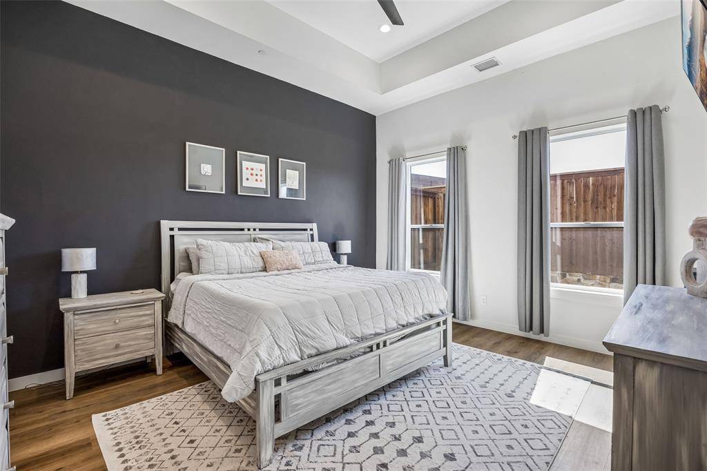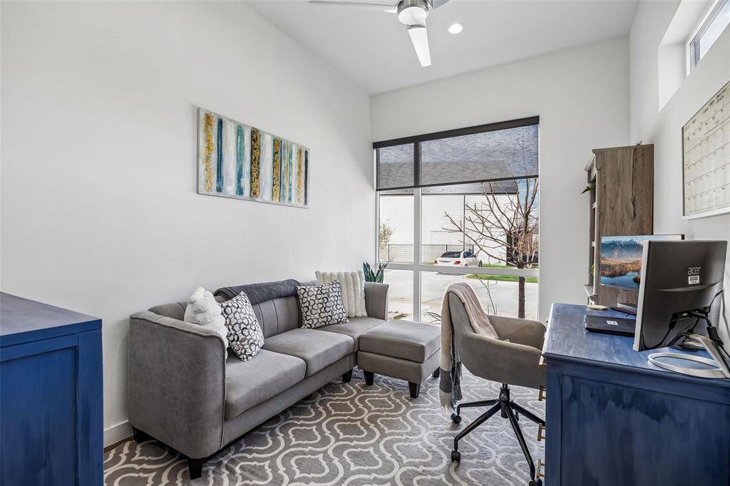 Offers will be reviewed April 8th. Experience modern living in Tillery Commons, offering a refined lock-and-leave lifestyle in the heart of the Grapevine area. Designed with clean modern lines and surrounded by more than three acres of greenbelt open space, this fully decorated new construction home blends thoughtful design with everyday comfort. A striking brick and siding elevation welcomes you into an open living plan highlighted by soaring 20-foot ceilings in the family room and an abundance of natural light. The spacious living area flows seamlessly into the dining space and a beautifully designed kitchen featuring a waterfall island, custom painted wood cabinetry, and a Bosch electric range, creating a stylish and functional gathering place for everyday living and entertaining. The primary bedroom is conveniently located on the main level and offers a luxurious ensuite bath designed for relaxation. A dedicated office with a beautiful window provides an ideal workspace for working from home. A powder bath is also located on the main floor for guests. Upstairs, you'll find two additional bedrooms and a lofted game room, offering flexible space for recreation or additional living. A walk-in attic provides valuable storage. This thoughtfully built home also includes spray foam encapsulation for enhanced energy efficiency, a fire suppression system, and custom pull-down shades for the upper living room windows. Residents of Tillery Commons enjoy low-maintenance living with HOA-maintained front yards, along with the beauty of nearby greenbelt spaces. Located just minutes from shopping, dining, entertainment, and the airport, this community offers convenience, style, and modern comfort in one exceptional setting.