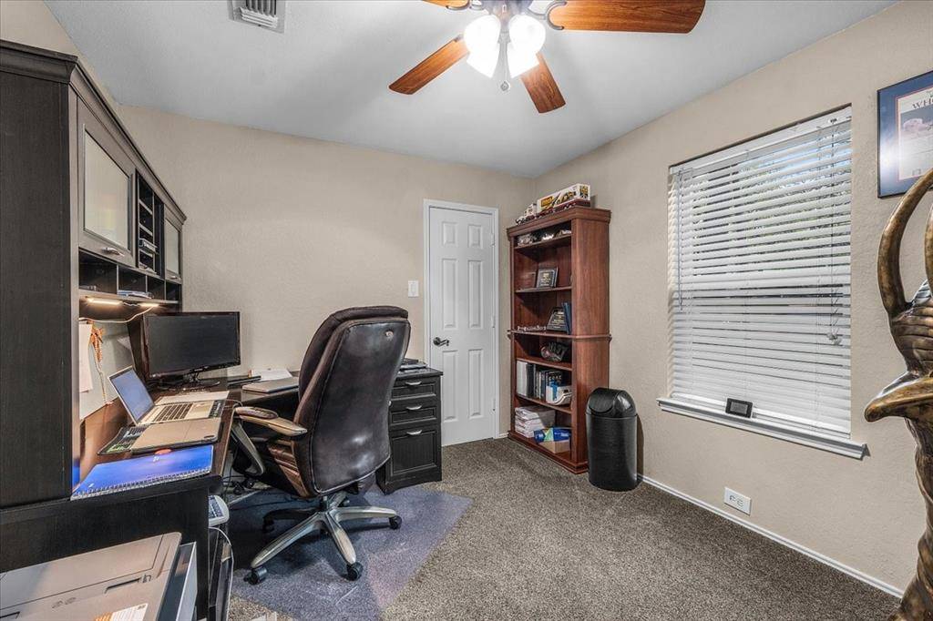 Welcome to this beautifully maintained home nestled on a quiet cul-de-sac in the heart of Grapevine! Surrounded by mature trees and set on a peaceful street, this property offers both privacy and a true neighborhood feel. Step inside to discover a spacious living area anchored by a stunning double-sided statement brick fireplace—creating a warm, inviting focal point that connects multiple living spaces. Vaulted ceilings with exposed beams and abundant natural light enhance the openness, while a versatile bonus room just off the main living area provides the perfect space for a home office, playroom, or additional lounge. The kitchen is both practical and welcoming, featuring stainless steel appliances, a center island ideal for gathering, and a generous pantry for ample storage. The primary suite offers a private retreat with an en-suite bathroom, while the secondary bathroom stands out with an impressive amount of storage—perfect for keeping everything organized. Step outside to your covered patio, complete with a built-in grill, creating the ultimate setting for entertaining year-round. The backyard also includes a storage shed and plenty of space to relax, garden, or play. Located in sought-after Grapevine with convenient access to shopping, dining, and major highways, this home combines comfort, character, and location in one exceptional opportunity. Schedule your showing today!