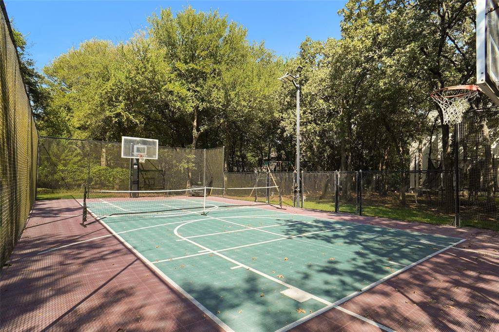 Step outside to your personal resort: a spectacular pool complete with slide, jumping waterfall, and a diving board. In the expansive yard framed by mature trees you will find a sports court, a large outside eating area with a built-in BBQ grill and plenty more room to roam.