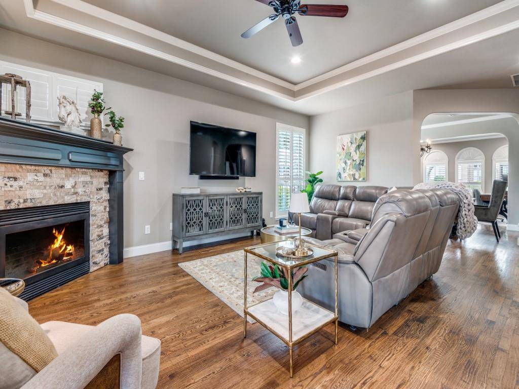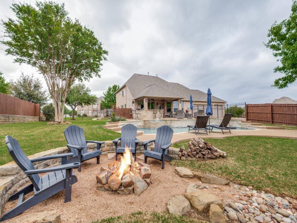 Situated on one of the largest corner lots in the neighborhood, this exceptional property offers both space and privacy with a beautifully designed two-story layout. A grand foyer welcomes you inside, flanked by a formal dining room and a versatile living area currently serving as a home office. The gourmet kitchen is thoughtfully appointed with a center island, farmhouse sink, and upgraded KitchenAid appliances - perfect for both everyday living and entertaining. The open layout flows seamlessly into the main living spaces, all enhanced by rich wood flooring and abundant natural light. The primary suite, located on the main floor, is a true retreat featuring a private sitting area, spa-like ensuite bath with a jetted tub, separate vanities, and a spacious custom walk-in closet with recently upgraded organization systems. Upstairs, you'll find a generous game room with a loft-style flex space ideal for a study, along with three well-sized secondary bedrooms and two full baths. Step outside to your private backyard oasis - complete with a beautifully remodeled pool, updated equipment and heater, an outdoor kitchen with built-in grill and refrigerator, and a dedicated entertainment area with fire pit - designed for year-round enjoyment. Extensive upgrades provide peace of mind and modern comfort, including full window replacement updated HVAC systems, water heaters, an interior remodel featuring wood floors, a striking staircase with wrought iron detailing, plantation shutters, and granite countertops in the kitchen and laundry room. Ideally located with a nearby park and access to extensive walking trails. This home effortlessly combines elegance, functionality, and resort-style living-all on a premier lot.