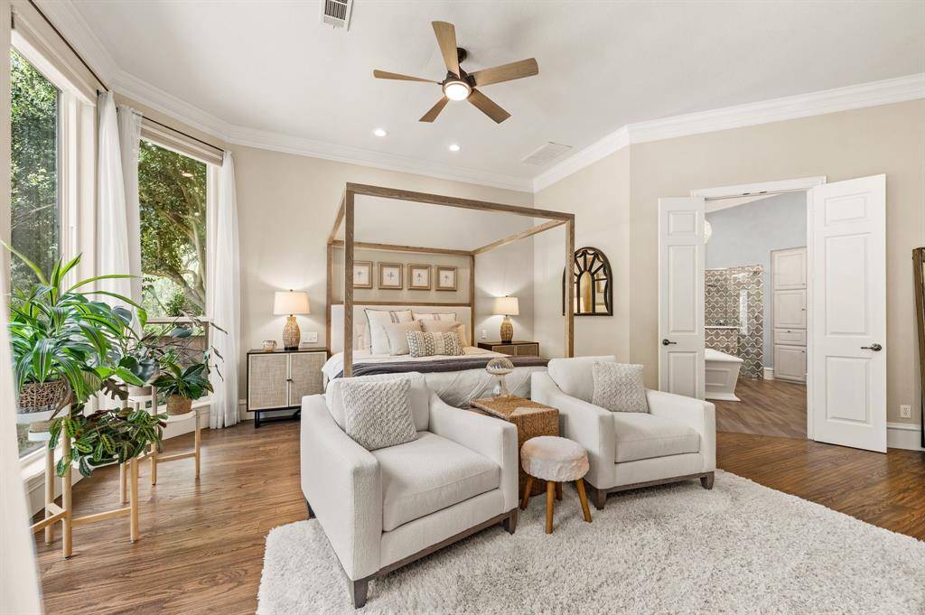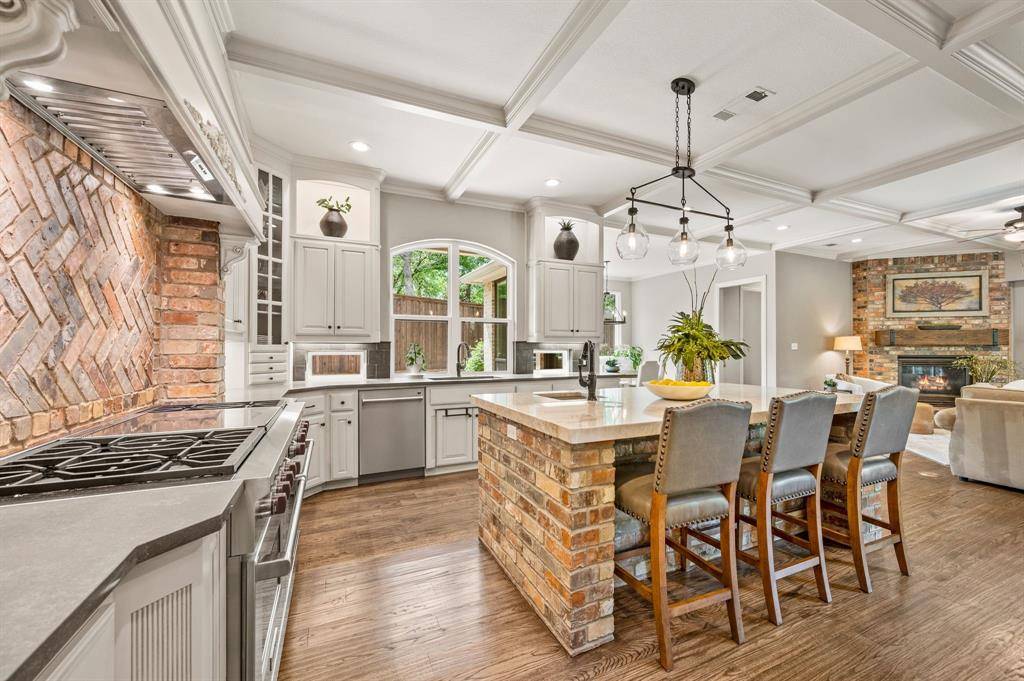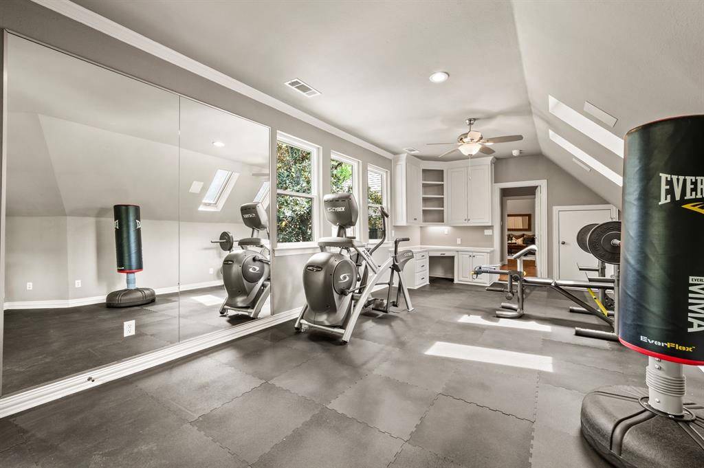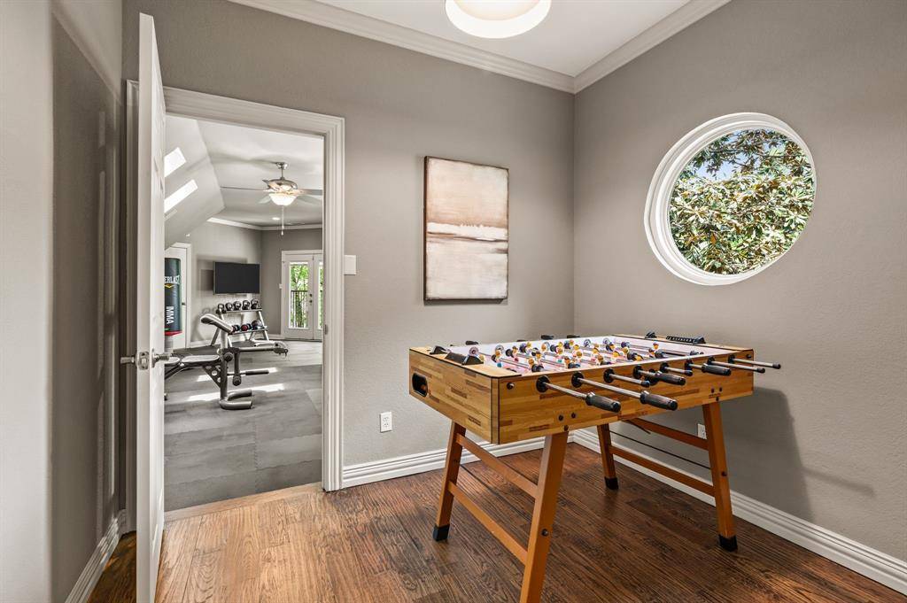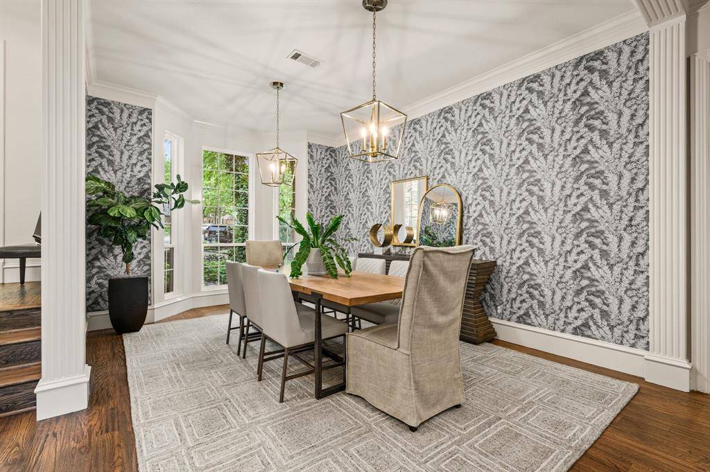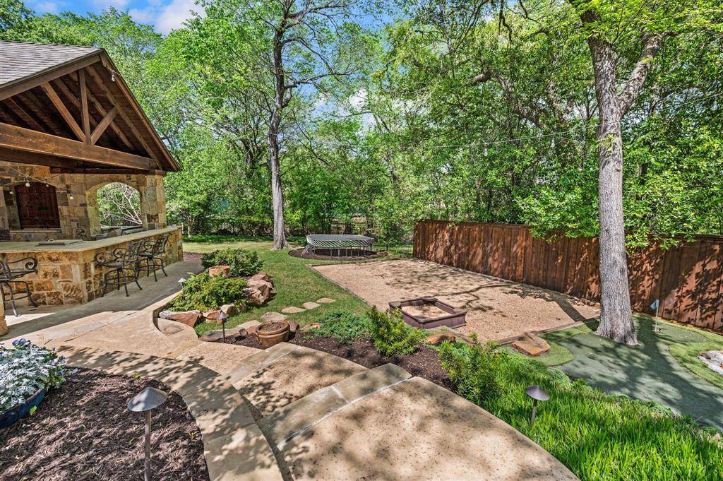 Upon entering the prestigious, guard-gated community of Monticello Estates in the heart of Southlake, tree-lined streets lead you to the end of a quiet cul-de-sac, where the neighborhood's premier oversized-lot awaits. Curb appeal wows with newly installed Traditions Windows, serene landscaping, and brand-new steel and glass double front doors which create a stunning first impression, beautifully blurring the line between indoors and out. Inside, the dramatic staircase is crowned by a striking new chandelier, while updated visual comfort lighting enhances the home with warmth and sophistication at every turn. Flanking the foyer, a richly color-drenched executive office and a designer-wallpapered dining room create elegant spaces for both work and entertaining. The residence offers five generously sized bedrooms, including two on the main level and three upstairs, all fully updated including quartz countertops, new lighting and tile. In addition, the home features an expansive game room with wet bar, a fully equipped fitness studio, and a spacious laundry suite with room for oversized appliances. At the heart of the home, the chef's kitchen is a true showpiece. New stunning Taj Mahal quartzite island anchors the space, complemented by soft cream cabinetry, an oversized double Wolf Range with six burners and an expansive griddle, a panel-ready Sub-Zero refrigerator, Wolf microwave, and double Blanco sinks. New dramatic two-story, double-paned windows frame sweeping views of the nearly three-quarter-acre grounds, showcasing a private, tree-filled and park like backyard oasis complete with a pool, spa, and expansive outdoor living space including new AOG grill, fully equipped kitchen, living and dining spaces. Other upgrades include mosquito mister system, Zosia sod, all new plumbing throughout home, a massive 4-car garage, extended driveway, and extra-high board on board fencing that provide added privacy and functionality. All this in the award-winning Carroll ISD!