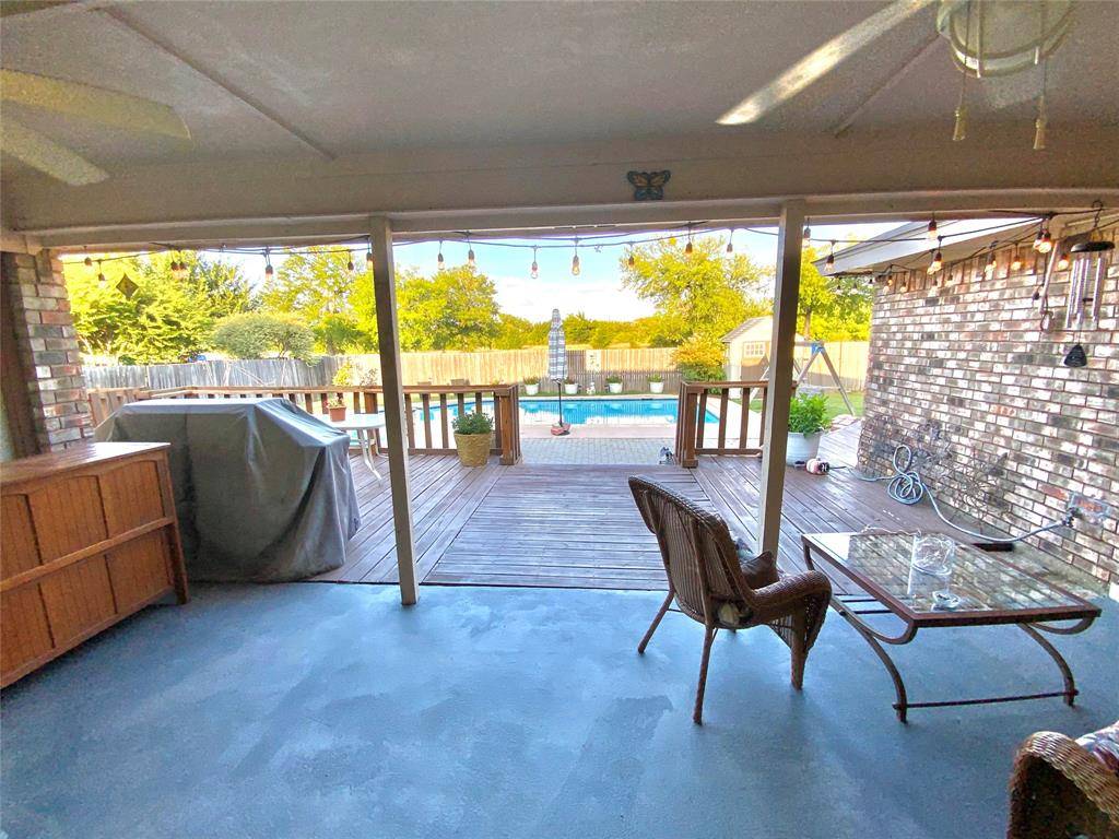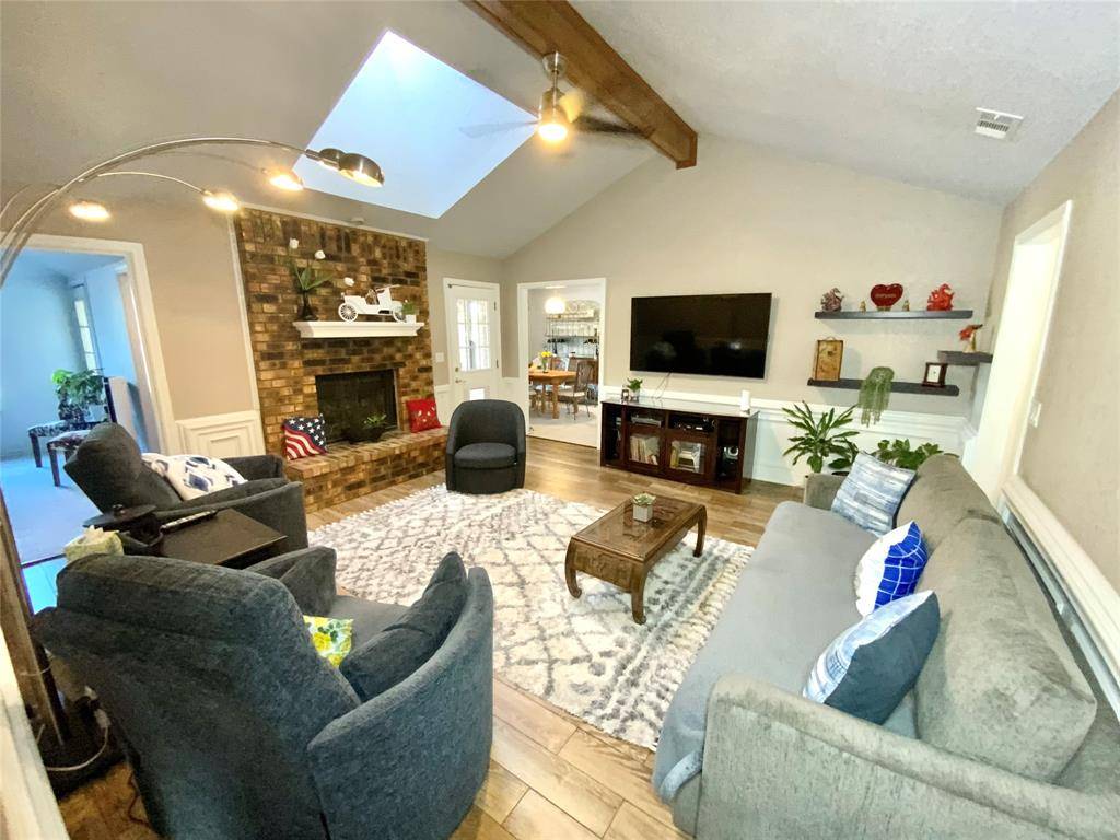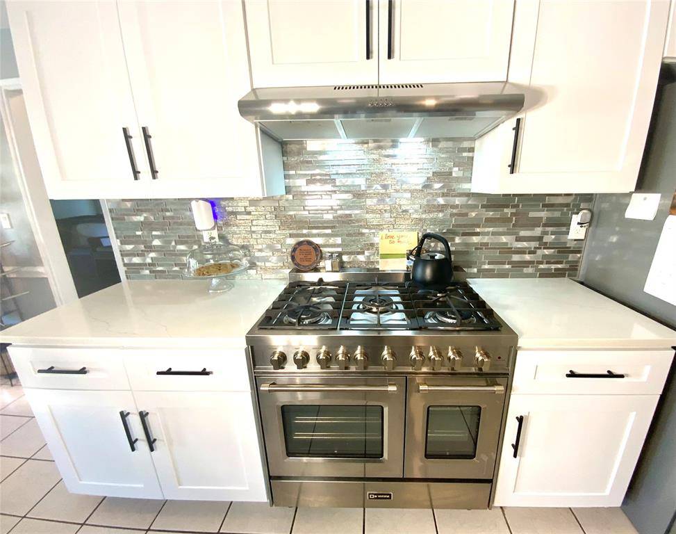This home features 4 spacious bedrooms plus a versatile den with private backyard access, this flexible space includes a wet bar and brand-new carpet, making it perfect for a home office, guest suite, or even a fifth bedroom. At the heart of the home, the inviting living room showcases vaulted ceilings and a cozy wood-burning fireplace. The kitchen is a standout, featuring sleek quartz countertops and a professional-grade Verona gas range imported from Italy, complete with dual ovens, five high-performance burners, and timeless European craftsmanship—perfect for any home chef. The primary suite offers a spa-like retreat with a walk-in tub designed for comfort and accessibility, featuring a side-entry door, built-in seating, and soothing hydrotherapy jets. Outside is your own private oasis—cool off this summer in the pool, or entertain guests on the expansive deck and covered patio, perfect for outdoor living year-round.